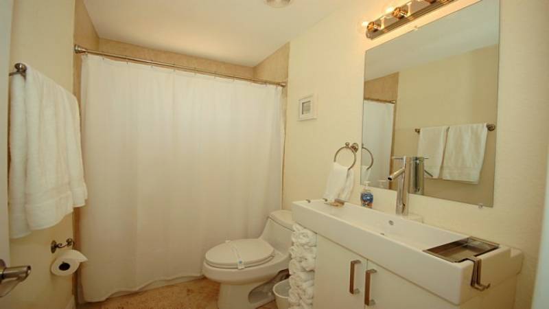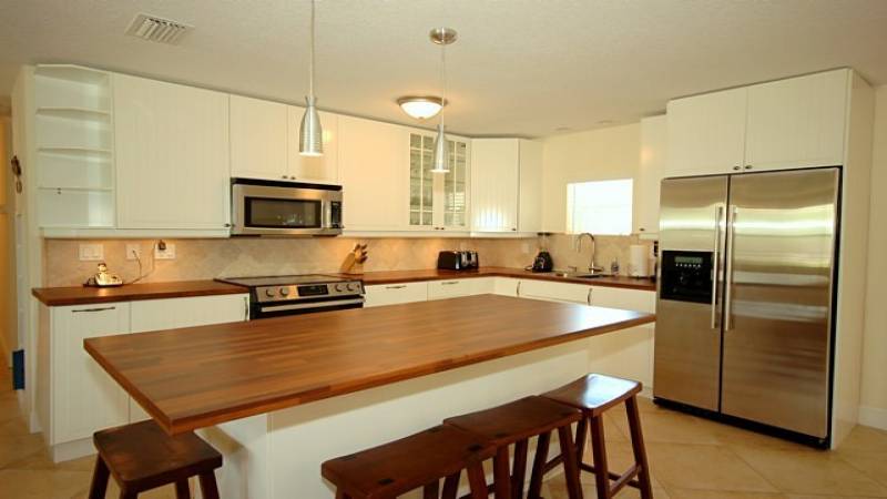Das Haus verfügt über 4 Schlafzimmer und 3 Badezimmer. 3 der Schlafzimmer haben sog. Kingsize Betten. Zwei Schlafzimmer sind sog. Master Bed Room, d.h. sie haben ein eigenes, an das Schlafzimmer angeschlossenes Badezimmer. Das vierte Schlafzimmer ist ein Kinderzimmer mit einem Doppelstockbett (3 Kinder). Zusätzlich gibt es ein Babybett sowie weitere Schlafgelegenheiten im Wohnzimmer.